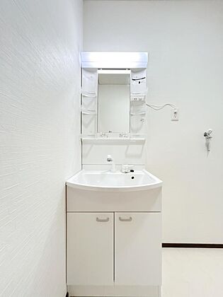 【リフォーム済】洗面化粧台はパナソニック製の新品に交換しました。洗面ボールは間口75cm、洗面ボールは耐久性のある人造大理石素材。小物トレー付き。