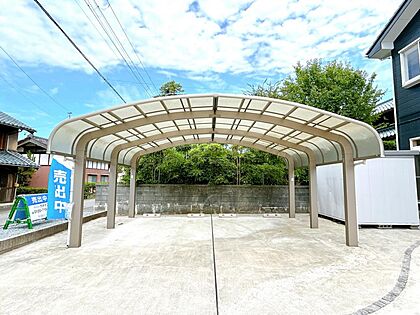 駐車場です。カーポートがございます。コンクリートの駐車場なので、乗り入れしやすくていいですね。