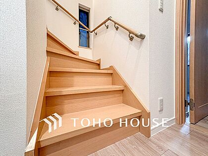 •  パブリックゾーンとプライベートゾーン繋ぐ階段。豊かな陽光が注ぎ込み、爽やかな住空間を演出。