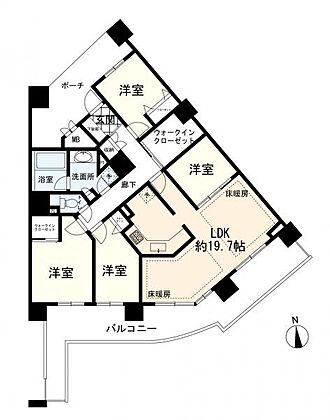 使い易いバルコニー。やわらかな陽射し・心地よい風。どこまでも広がる空の下、限りない開放感を味わえる空間です。