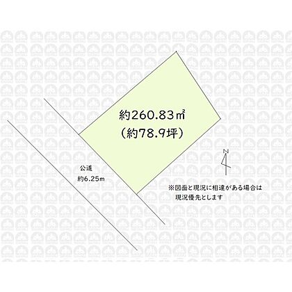 | 土地面積/坪(坪単価) | 260.83m2(登記簿)/79.04坪(22.50万円) | 代表的な接道 | 一方 公道 南西 6.2m ※詳細は備考欄をご確認ください |
