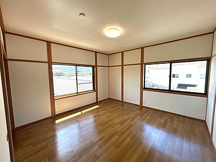 (リフォーム済)2階和洋室8帖です。天井と壁はクロス張りにし、床はクッションフロアを張りました。南東のお部屋で明るく風通しの良い部屋です。