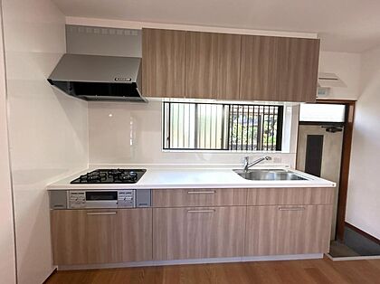 (リフォーム済)キッチンはハウステック製の新品に交換しました。引出には一升瓶や寸胴鍋など背の高いものも収納できます。天板は熱や傷にも強い人工大理石仕様なので、毎日のお手入れが簡単です。