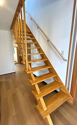 (リフォーム済)階段です。天井と壁のクロス張りを行いました。手すりがあるので階段の上り下りが楽になりますよ。