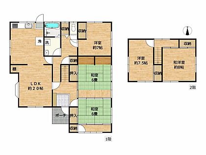 リフォーム後の間取り図です。1階に居室が3つある5LDKの間取です。平屋感覚でも住めるお家です。