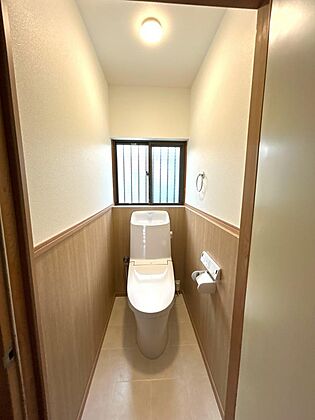(リフォーム済)トイレはLIXIL製の温水洗浄機能付きに新品交換しました。キズや汚れが付きにくい加工が施してあるのでお手入れが簡単です。直接肌に触れるトイレは新品が嬉しいですよね。