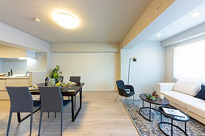 洋室3のウォールドアを開けると2LDKとして利用可能な広々とした約22.7帖のLDK