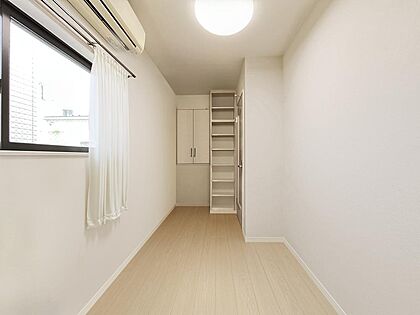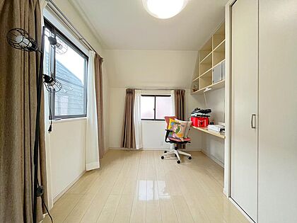 3階洋室、造り付けのデスクや収納棚があります。