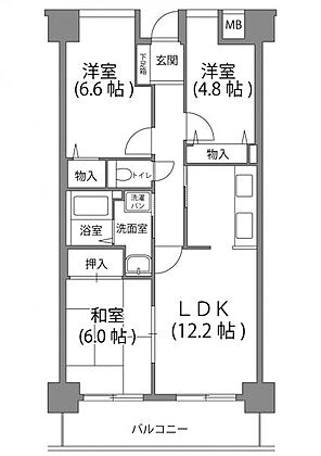 | 間取り | 3LDK | 専有面積 | 62.59m2(壁芯) |