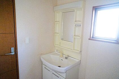 生活用品のレイアウトが見やすい一面鏡タイプの洗面化粧台。