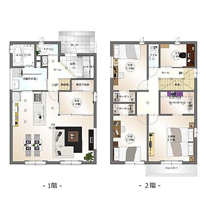 リビングには3帖の洋室付き!2階ホールには3帖の書斎付きで多様な使い方が可能です