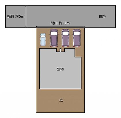 【区画図】間口と前面道路幅員が広いので、車の出し入れがしやすいです。