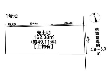 幅員約4.9mの前面道路です。お子様と手を繋いで歩いている横を車が通り抜けれる道幅となっています。安心してお子様と一緒にお出掛けする事が出来ます。