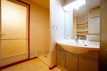 バスタオルや着替えなど置くことができる棚を設置。洗剤のストックも収納できます。