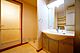 三面鏡つき洗面台。鏡裏にたっぷりとした収納スペースがあります。鏡を閉めてしまえば小物は見えないため、スッキリとした印象の洗面台にできます。