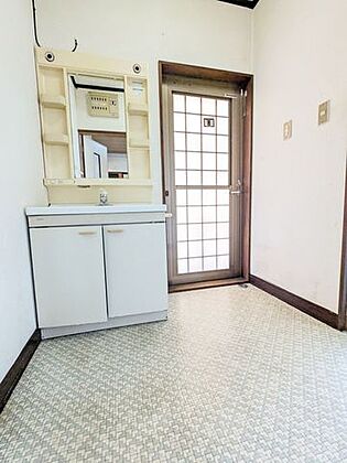 大き目の洗面ボウルに鏡付きでメイクや身だしなみをととのえるのに便利です