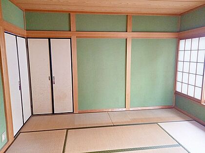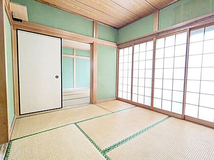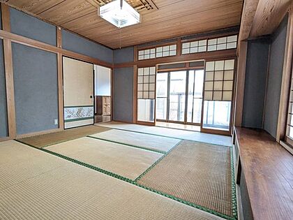 1階8帖和室南側 押入・仏間・床の間・広縁付き。南向きのお部屋で2面採光の陽当たりの良いお部屋です。