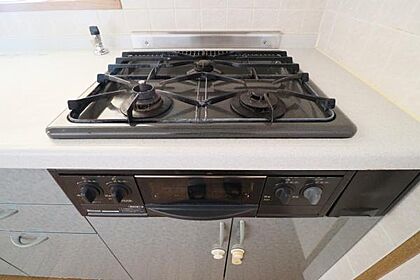 3口コンロ、グリル付きのガスコンロの様子♪