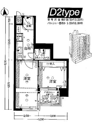 | 間取り | 2K | 専有面積 | 30.72m2 |