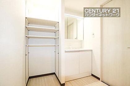 洗面室にはタオルや洋服なども収納できます。