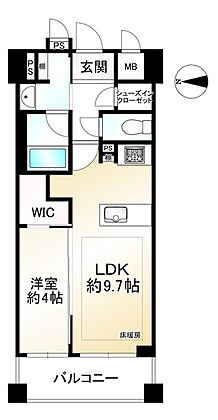 間取り 1LDK 専有面積 37.26m2(壁芯)