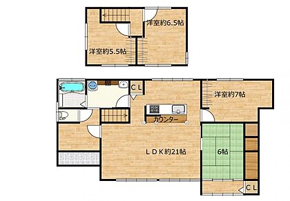 【リフォーム済】LDKです。壁、天井クロスを交換し床をフローリングで仕上げました。ご家族の集まれる空間へと仕上げました。
