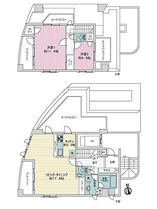 メゾネット1階部分ルーフバルコニー(所在は7階)