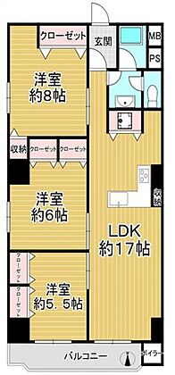 | 間取り | 3LDK | 専有面積 | 79.56m2(壁芯) |