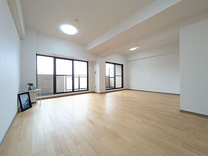 リビングは、落ち着いた色合いのフローリングが特徴です。家族の時間を大切にする理想的な空間です。