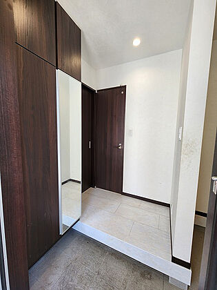 玄関 収納量豊富なシューズクロークと姿見の鏡は便利です。