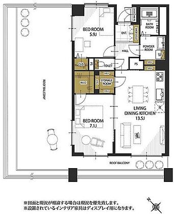 洋室約7.1帖:大容量のウォークインクローゼット。洋服や普段使わない物をたくさん収納できます。