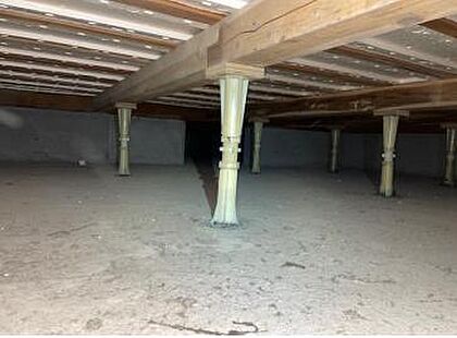 【床下写真】床下です。断熱材も入っておりコンクリート基礎の仕様です。シロアリ防除には5年間の保証付き(施工日から。施工箇所のみ施工会社による保証)。さらに計2回の無料点検もあります。