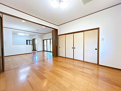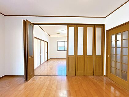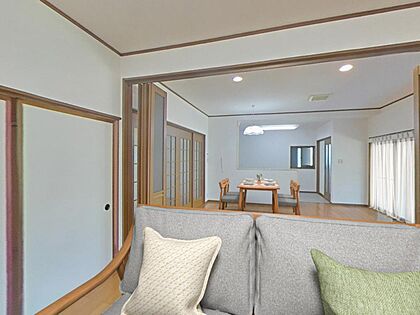 【リフォーム済】1階リビングです。仕切りが併設されております。クロスの交換工事を行いました。