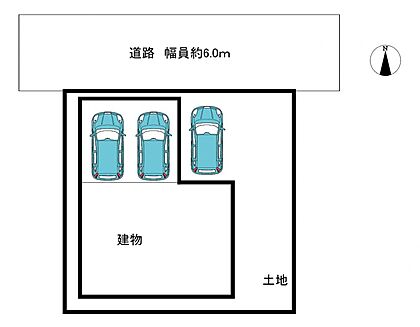 【区画図】ガレージ2台、青空駐車場1台の合計3台の駐車スペースがございます。