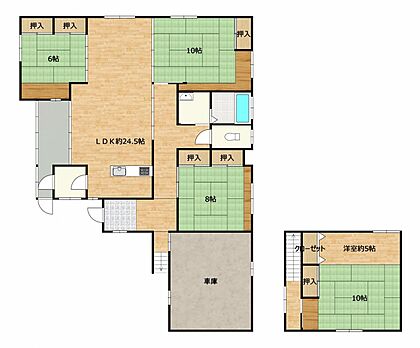 【間取り図】4LDKのお家です。電動ガレージも併設されています。