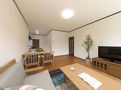 【リフォーム完成】リビングの写真です。フローリング上張り、壁天井のクロス張替などを行いました。13.75帖のリビングで、団欒の場になりそうですね。
