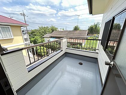 【リフォーム完成】ベランダの写真です。こちらは塗装を行いました。南側に面しているのでお布団などもしっかり乾きそうですね。