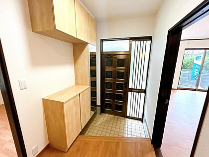 【リフォーム完成】玄関内部の写真です。ポーチタイルはクリーニング、シューズボックスは交換、壁天井はクロス張替を行いました。