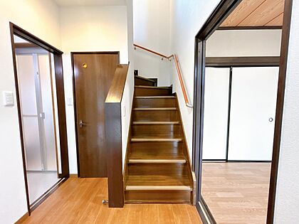 【リフォーム完成】階段写真です。踏板にノンスリップを設置し、新しく手すりも設置。手すりがあると、お子様もご年配の方も安心して上り下りが出来嬉しいですね。