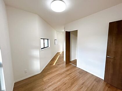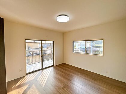 【リフォーム済】2階の9帖の洋室は、住宅が密集していなくスペースがあるため、日あたりもよいです。折れ戸収納に変更しました。収納スペースがあると収納用の家具のスペース分居室として活用することができますね