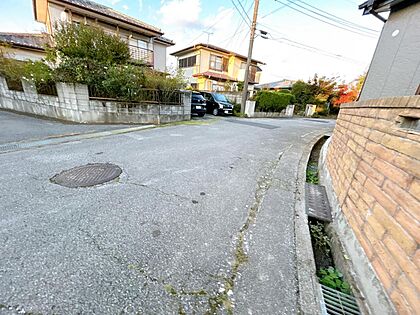【前面道路】前面道路は幅員5.5m、間口や土地が広く、駐車スペースを確保することができます。交通量が少ないため駐車が苦手な方も安心です。