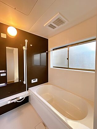 【浴室】浴室はハウステック製の新品のユニットバスに交換しました。浴槽には滑り止めの凹凸があり、床は濡れた状態でも滑りにくい加工がされている安心設計です。