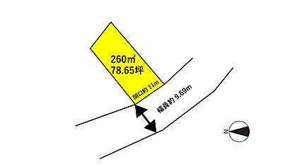 | 土地面積/坪(坪単価) | 260.00m2(登記簿)/78.79坪(14.00万円) | 代表的な接道 | 一方 公道 西 9.7m ※詳細は備考欄をご確認ください |