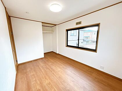 •  【リフォーム済】2階北側の洋室です。床は永大産業製のフローリング重ね貼り、天井と壁のクロスを張替え、LED照明に交換しました。押し入れ部分はオープンクローゼットに変更しました。