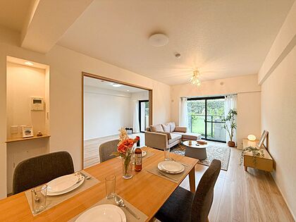 【ダイニングキッチン】キッチンのにおいがダイニングスペースに逃げにくい快適な間取りです。