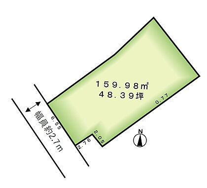 | 土地面積/坪(坪単価) | 159.98m2(登記簿)/48.48坪(28.90万円) | 代表的な接道 | 一方 公道 南西 2.7m ※詳細は備考欄をご確認ください |