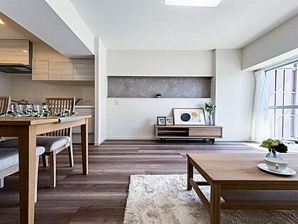 多くの光りを取りこむLDKは照明と日差しでスタイリシュなLDKに…家族が集まるリビングだからより使いやすく美しく。