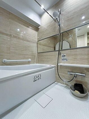 上質が感じられるカラーリングで、清潔な空間美を実現。一日の疲れが癒される優雅なバスタイムを堪能できるゆとりあるバスルームです