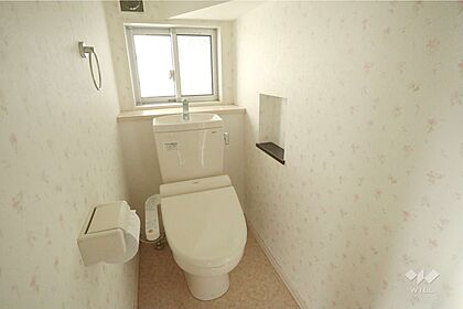 1階トイレ窓付きで換気がしやすいです。小物がおけるスペースもあり、空間を彩ることができます。