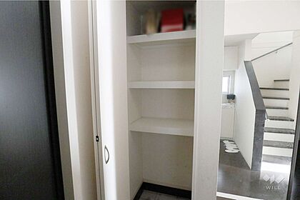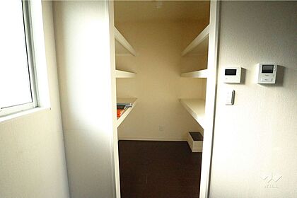 パントリーキッチン横にはパントリーも設置されており、収納力もばっちりです。